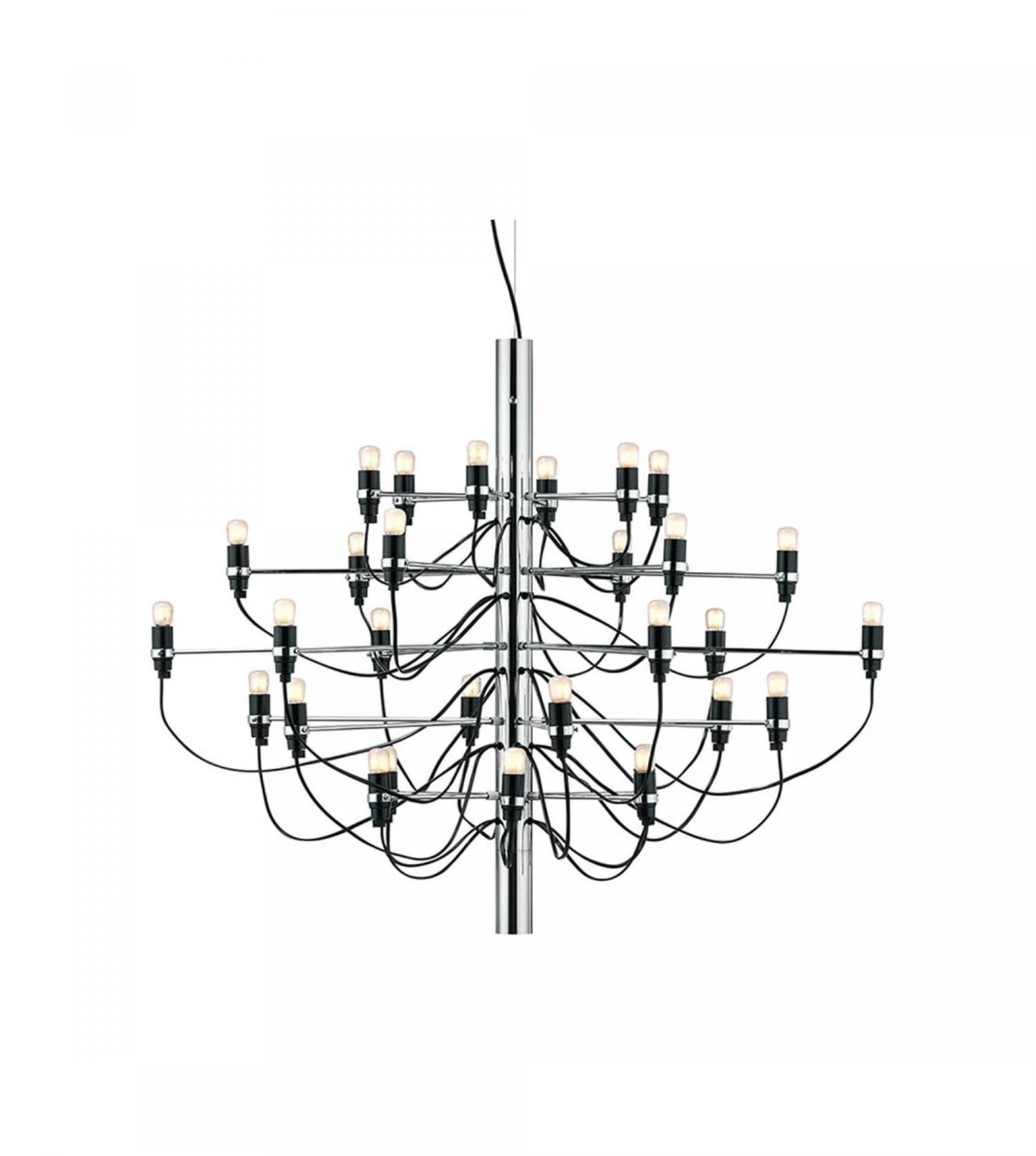 Chef d’œuvre d’un maître du design extrêmement prolifique, le chandelier 2097/30 imaginé par Gino Sarfatti et édité par l’incontournable maison Flos traverse les époques avec élégance et demeure une référence absolue en matière de luminaire haut de gamme. Suspension baroque en acier déclinée avec 3 finitions différentes (noir, chrome, laiton) disposant de 30 ampoules et d’autant de bras pour les soutenir, le chandelier 2097/30 de la marque Flos est une constellation lumineuse, un lustre design iconique, véritable référence pour tous les amoureux de la discipline. Hors norme avec ses 30 sources lumineuses, audacieux par sa taille et son ambition et graphiquement merveilleux grâce aux courbes fluides des fils électriques qui se superposent à la rigidité des bras du luminaire, le lustre 2097/30 dessiné en 1958 par Gino Sarfatti offre un éclairage d’ambiance chaleureux et diffus. Relié au plafond par une attache et une rosace en acier, le chandelier 2097/30, généreux et atypique, possède une personnalité charismatique, un style unique né de l’heureuse fusion entre l’art et la technique destiné à enchanter le quotidien de chacun. Autour du corps tubulaire du luminaire, magnétique et vibrant, gravitent les 30 ampoules qui reprennent la disposition des chandelles des lustres traditionnels tout en optant pour une silhouette résolument graphique. Dessiné par Gino Sarfatti, fondateur de la mythique société Arteluce, référence absolue en matière de luminaire design, le chandelier 2097/30 (ainsi que sa version 2097/50 en vente chez BLOU) connait depuis plus de 60 ans un succès international flamboyant. Particuliers et professionnels succombent à l’élégance indémodable de ce chandelier réalisé grâce à de savantes prouesses technologiques dont était coutumier le grand Gino Sarfatti. Luminaire grand format idéal pour sublimer son intérieur, la suspension 2097/30 Flos trouvera sa place dans les espaces volumineux susceptibles de lui réserver le meilleur accueil et capables de faire honneur à sa personnalité atypique (grandes entrées, escaliers, salons, salles à manger, bureaux, chambres à coucher, etc.). Suspension décorative destinée à voir et être vue, le chandelier 2097/30 a su traverser avec style le 20ème et le 21ème siècle, habillant de lumière espaces privatifs et lieux dédiés à l’exercice d’une activité professionnelle (salles d’exposition et de réception, hôtellerie haut de gamme, etc.). En collaborant avec Gino Sarfatti, les frères Castiglioni puis Philippe Starck, Flos a toujours encouragé les designers à créer sans limites, avec bonne humeur et fantaisie sans oublier d’expérimenter toujours plus et de s’essayer à de nouvelles techniques et d’adopter tous types de matériaux. Intemporelle, inclassable et fascinante, la suspension 2097/30 Flos fait rêver les passionnés de design et de décoration depuis des générations et électrise l’univers du luminaire depuis 1958. De quoi voir 36 chandelles.