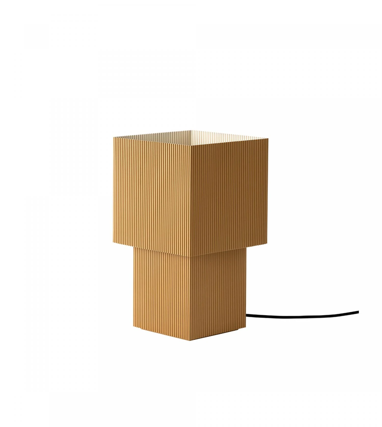 Une lampe à poser en métal ondulé jouant sur la perspective. Les designers Broberg & Ridderstråle ont expérimenté lors de leurs travaux architecturaux le carton ondulé et c’est ce matériau qui leur a donné l’idée de créer avec du métal ondulé.