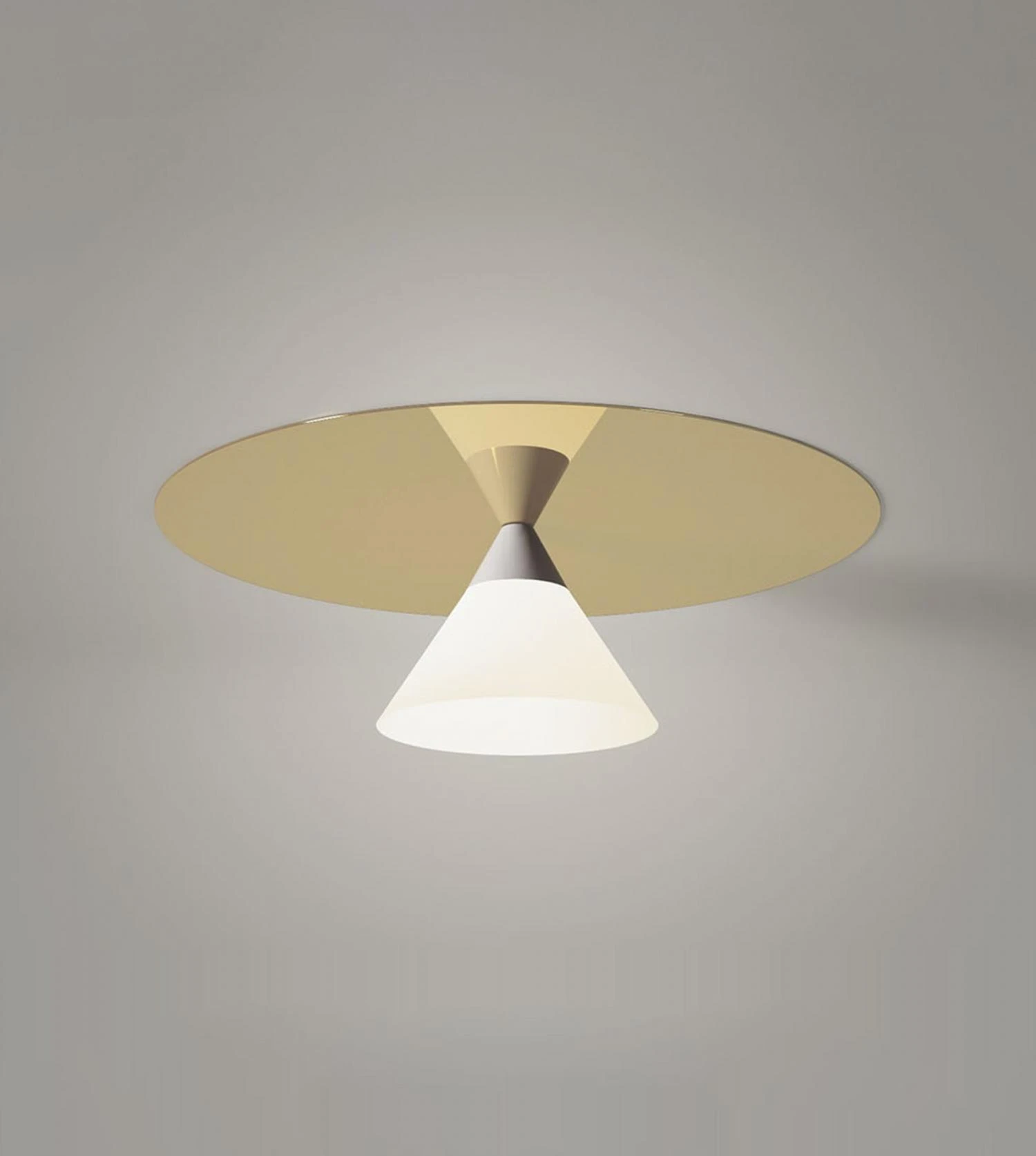 Sobre et élégant le plafonnier plate and Cone édité par la maison Atelier Areti permet d’éclairer avec douceur toutes les pièces de la maison de l’entrée à la chambre à coucher en passant par le salon et la salle à manger. Luminaire design délicat en laiton, la lampe plate and cone ceiling light Areti composée d’un réflecteur conique en verre soufflé opalescent et d’une structure ronde en forme de disque séduira l’amateur de décoration par sa présence radieuse et solaire. La marque Areti exploite les propriétés réflectives du laiton, joue sur l’effet miroir du disque et double ainsi la lumière émise par l’unique ampoule du plafonnier. Moderne et chaleureux, ce luminaire fabriqué en Allemagne par de talentueux artisans est né de l’heureuse association entre deux formes géométriques, le disque et le cône. A l’image de l’ensemble du catalogue Atelier Areti la vocation de cette pièce lumineuse design est de durer au moins cent ans, un long siècle pendant lequel elle se doit d’être belle et fonctionnelle, subtile et raffinée. Le laiton, matériau noble par excellence, permettra au plafonnier Plate and Cone Areti d’intégrer des intérieurs classiques. Son minimalisme et son graphisme lui ouvriront aussi les portes des univers plus contemporains. Depuis 2008 la marque Atelier Areti fondée par Gwendolyn et Guillane Kerschbaumer enchante l’univers du design et de la décoration à travers des collections aux influences multiples, et aux ambitions différentes. Du plafonnier Motive Long (en vente chez BLOU) à la lampe Plate and Cone ceiling light les luminaires Areti changent de forme et de dimension mais restent fidèles à la ligne de conduite de la maison : l’excellence.