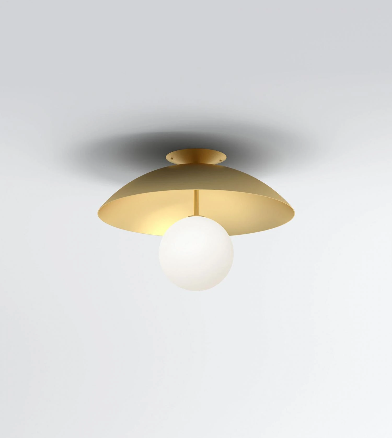 Variante du plafonnier Up and Down Bowl Down Atelier Areti (disponible chez BLOU), la ceiling light with tube se dote d’une tige en laiton et devient presque une suspension.
