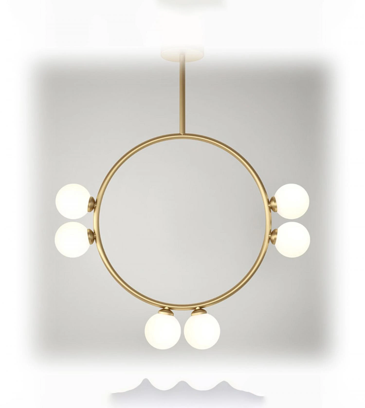 Atelier Areti a décliné sa gamme de luminaires design géométriques (Circle, Triangle et Rhombus disponibles chez BLOU) à 3 sphères en version extra lumineuse à 6 globes. En doublant le nombre d’ampoules la maison Areti pare ses suspensions de nombreuses sources de lumière qui viennent rehausser une structure sobre et graphique. Elégante et solaire la suspension Circle 6 globes Areti en laiton (finitions noir et blanc en métal thermolaqué également disponibles) est une proposition audacieuse de la maison d’édition qui transforme une solution d’éclairage sobre en objet décoratif architectural hors norme. Luminaire d’ambiance omnidirectionnel symétrique et élégant la lampe Circle 6 globes pendant light Areti révèle l’étendue du talent des designers Gwendolyn et Guillane Kerschbaumer qui expérimentent, osent, associent formes et matériaux et donnent naissance à des luminaires hors du commun. Comme l’ensemble du catalogue de la maison Areti la suspension Circle 6 globes a fait l’objet d’une attention particulière puisqu’elle est fabriquée à la main et à la demande par des artisans basés en Allemagne. Suspension au design intemporel, la lampe Circle 6 globes trouvera sa place parmi une grande variété de décors (contemporains, classiques, etc.) et s’invitera naturellement et pour longtemps dans un salon ou une salle à manger, au-dessus d’une table ou d’un canapé. Dans des espaces privatifs ou des lieux dédiés à une activité professionnelle (restaurants, hôtellerie, boutiques, cabinets, etc.), les amateurs de design et passionnés de décoration sauront réserver une place de choix à ce luminaire radieux. Atelier Areti propose des pièces design destinées à durer au moins cent ans. Symboliquement le cercle représente la perfection, la permanence et l’éternité. Avec la suspension Circle 6 globes Areti la boucle est bouclée.